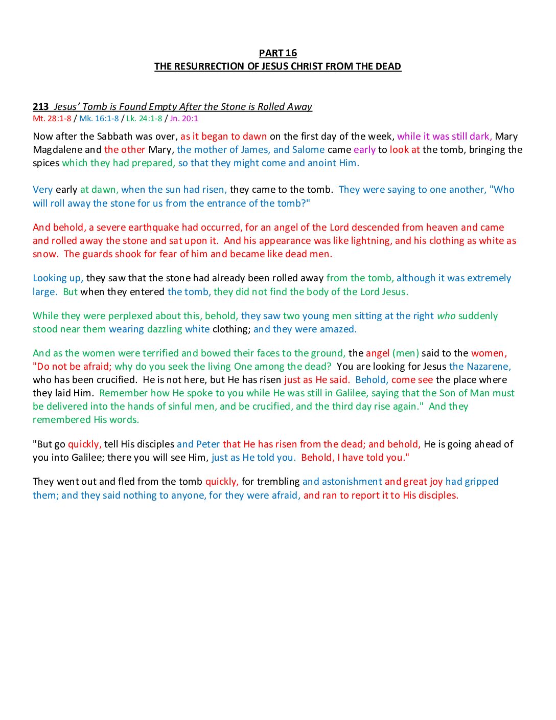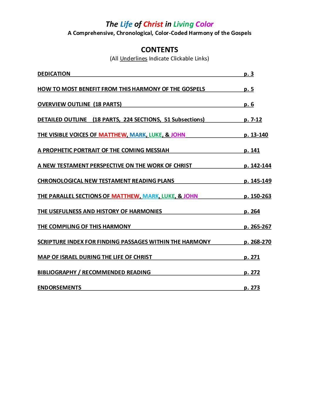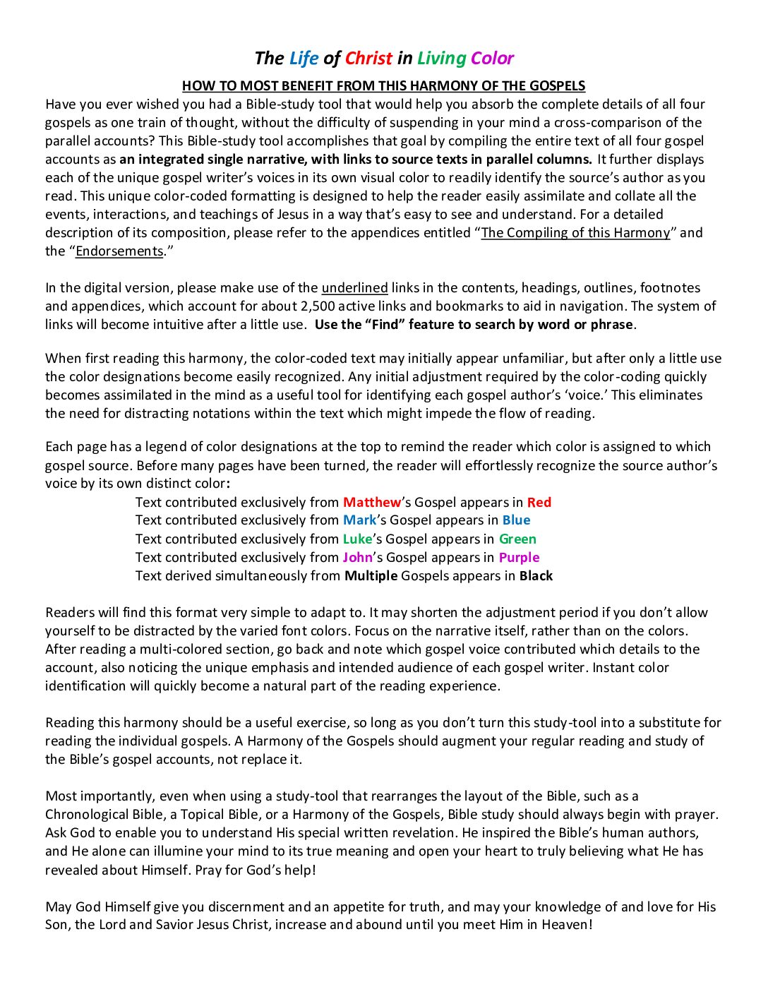 • A Comprehensive, Chronological, Color-Coded Harmony of the Four Gospels